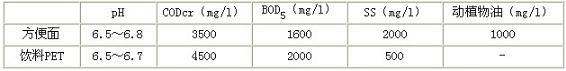 生產(chǎn)廢水與員工生活廢水混合后,混合廢水的水質(zhì)為(設(shè)計(jì)水質(zhì)):