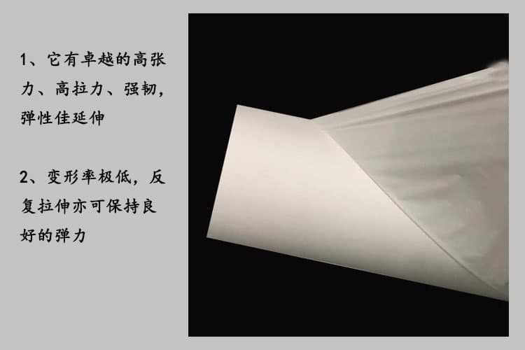 1、它有卓 越的高張力、高拉力、強韌,彈性佳延伸